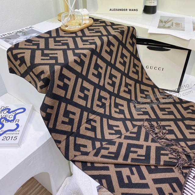 FENDI秋冬季羊絨羊毛圍巾披肩 芬迪2021年新款男女同款雙面提花圍巾 mmj1694