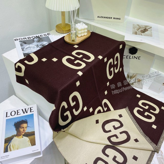 Gucci經典百搭款羊絨長巾披肩 古馳女款羊絨混紡圍巾 mmj1702