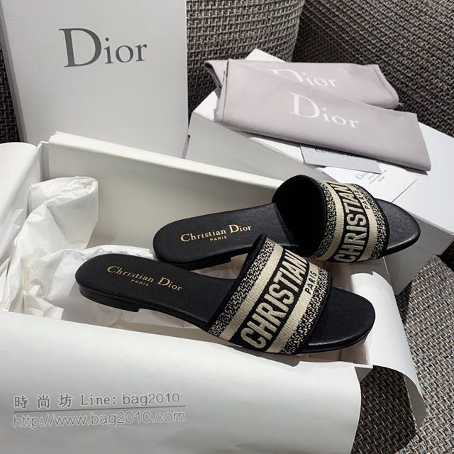 DIOR女鞋 迪奧2021專櫃新款磨砂新大底涼拖 Dior一字型刺繡拖鞋  naq1444