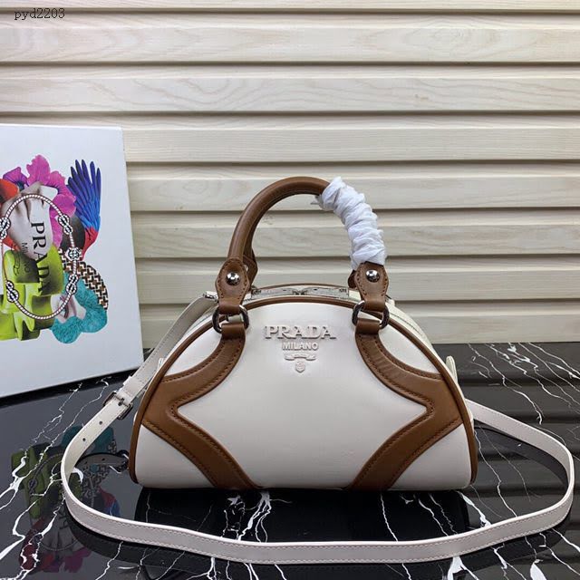 prada女包 普拉達2020年專櫃最新款 小牛皮女士手提包 1BB071 拼接菱形圖案 prada單肩女包 pyd2203