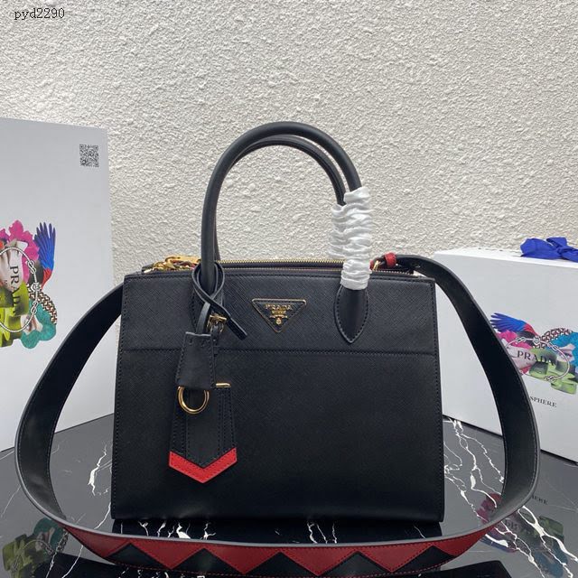 P家專櫃經典爆款1BA102到貨了Esplanade Saffiano手袋義大利進口拼色十字紋牛皮搭配平紋小牛皮24K五金金屬配件最大特色配寬版拼色齒紋肩帶女神必備,165代工碼,尺寸:31×23.5×15cm!