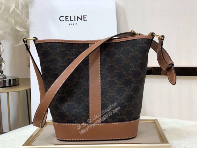 Celine專櫃2022新款TRIOMPHE標誌印花nano小號水桶包 191132 賽琳經典凱旋門肩背水桶包 sldj2388