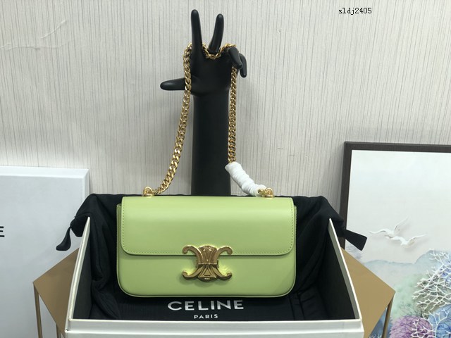 Celine專櫃2022新款小號亮澤牛皮革鏈條包 賽琳凱旋門鎖扣金屬鏈條腋下包 sldj2405