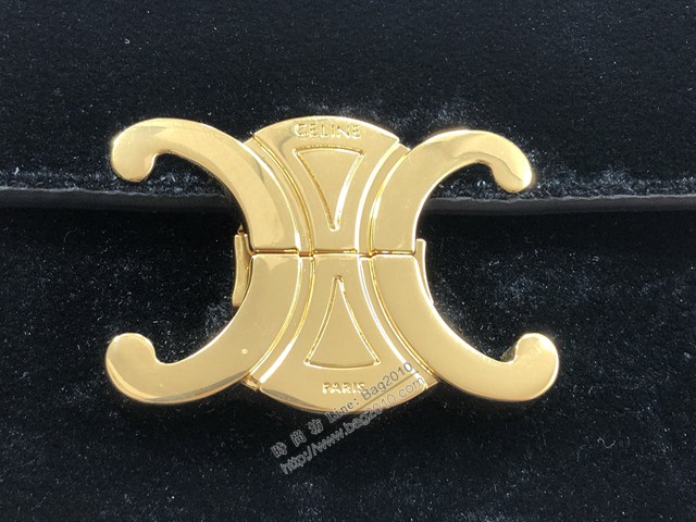 CELINE Triomphe Shoulder Bag 最新款凱旋門腋下包絲絨材質本身比圖片看上去甚至更高級,有點Old Celine的味道。天鵝絨和凱旋門金扣的反差極美,極優雅。上身超級優雅溫柔顯氣質,喜歡配西裝和牛仔,vintage lifestyle永遠鍾情。長方形的輪廓復古感滿滿~材質:絲絨搭配羊皮革襯裏。肩背。TRIOMPHE 金屬拋光帶磨砂質感鎖扣,內側扁平口袋,可調節皮革肩帶長20cm16868編號:194143 。尺寸:20/10/4