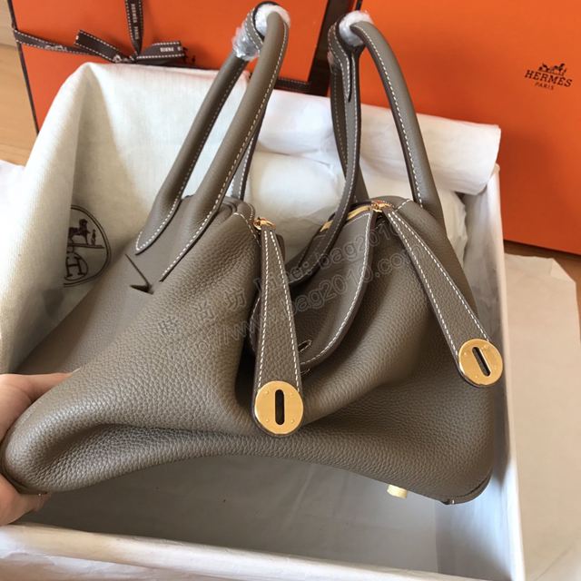 Hermes女包 愛馬仕手提包 進口頂級小牛皮 Lindy包 大象灰 金扣 大小號 td1207