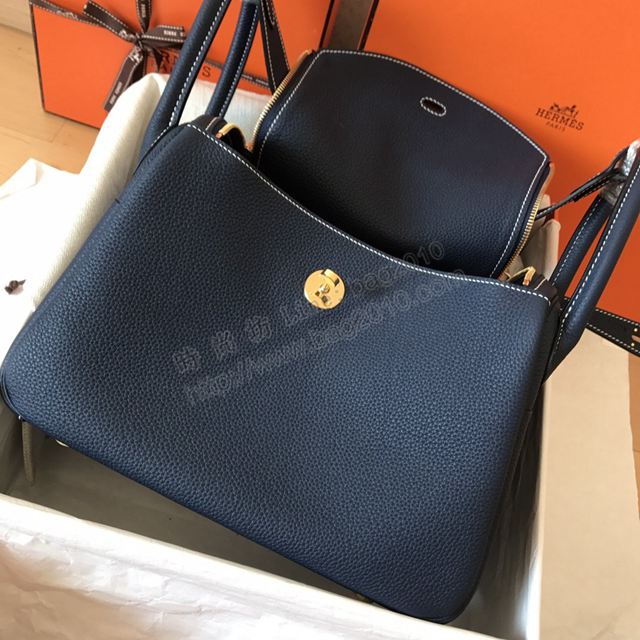 Hermes女包 愛馬仕手提包 進口頂級小牛皮 Lindy包 7K寶石藍 金扣 大小號 td1209