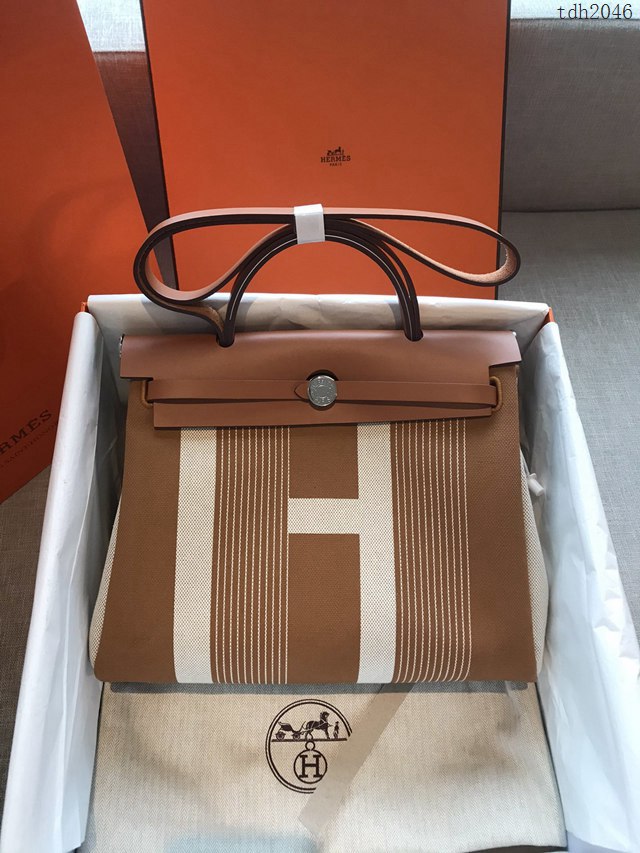 【對比正品全網最新最高版性價比升級版 Herbag 31cm 明星產品 獨家定制控貨】絲印棕|內縫“她 只可遇不可求”這是專賣店現在對herbag這款it bag 最好的詮釋 國際頭牌真正的進口皮 對比任何版本綽綽有餘 正品細節原裝原鋼 配原制Double高立體防水布 但是比全皮輕便 整個包可以全部拆卸分散 方便清潔 非常適合(男女神)日常實用 又不是很誇張 很低調的學院派百搭又不沉悶 屬於Hermes入門款 另外包包裏面還附有一個小袋子可以放唇膏鑰匙化妝品現金輕鬆納入 另外都有不同老匠製造的年產標記 藝術限量版的唯一鑒定 !Hermes Herbag PM尺寸:高25*寬31*深10依舊屬於Herbag系列裏面的小型包,成熟而又舒適的設計,很適合約會的時候使用哦!