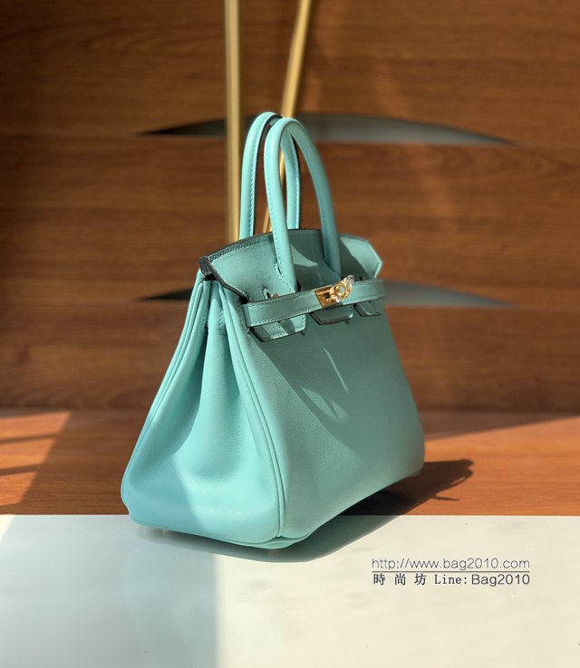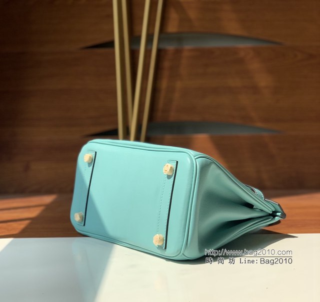 Hermes女包 愛馬仕Birkin25 swift皮 手工縫製 瑪卡龍藍金扣 Hermes鉑金手提包 tdh2153