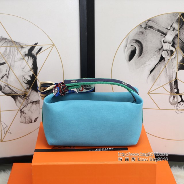 Hermes女包 愛馬仕飯盒包 Trousse Bride-A-Brace Hermes帆布便當包 湖水綠 tdh2157