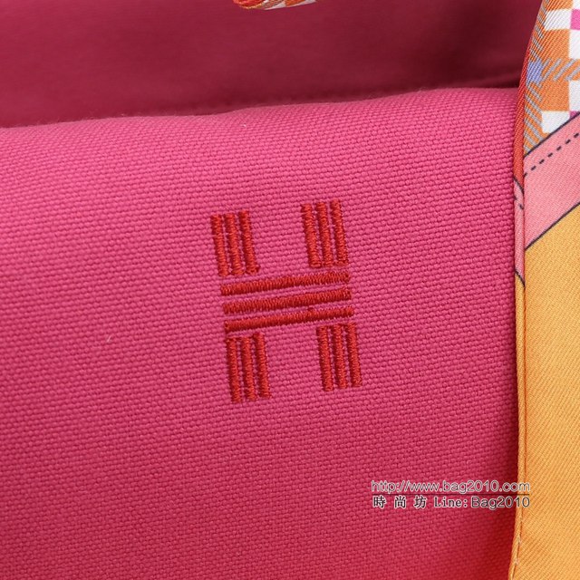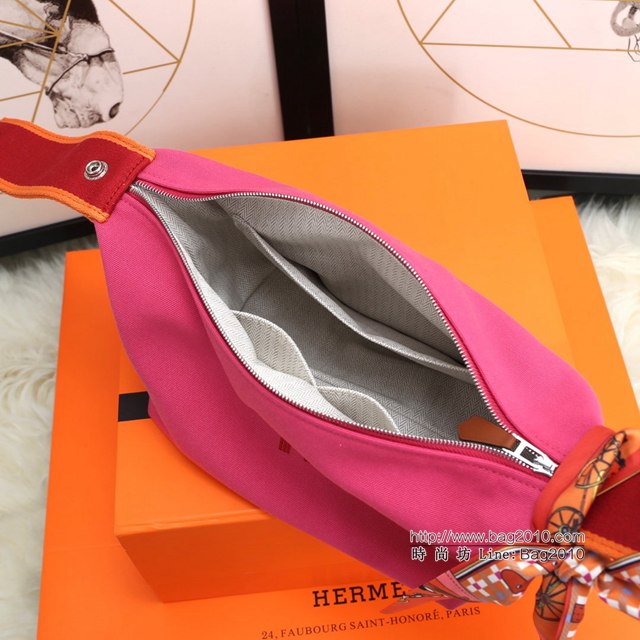 Hermes女包 愛馬仕飯盒包 Trousse Bride-A-Brace Hermes帆布便當包 玫紅 tdh2158