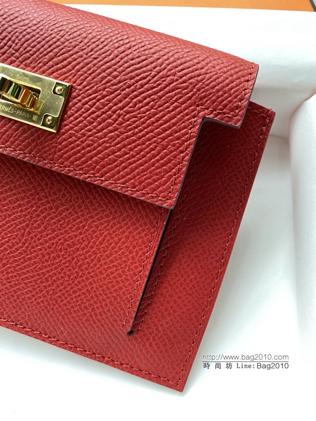 Hermes卡包 愛馬仕原版Kelly Pocket Epsom皮 Hermes新款小錢包 國旗紅金扣 tdh2178