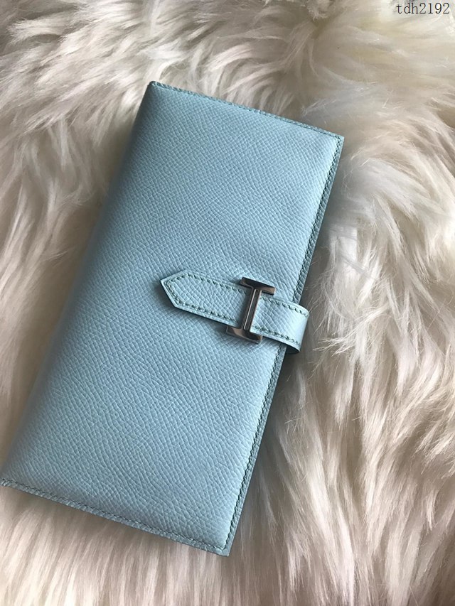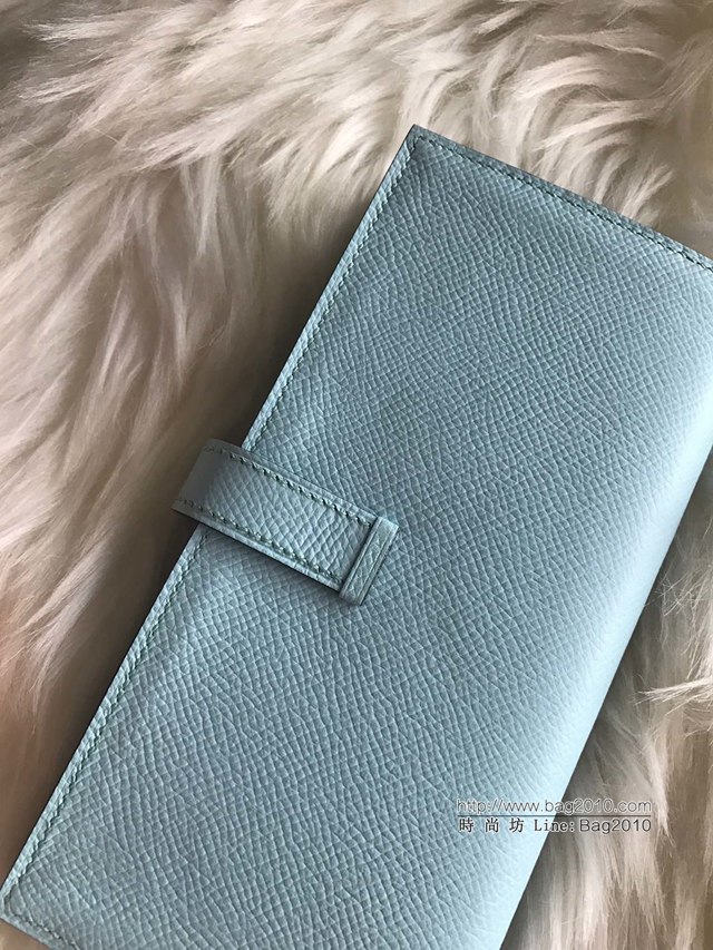 Hermes錢包 愛馬仕bearn長款錢夾 進口epsom皮 微風藍 金扣銀扣 tdh2192