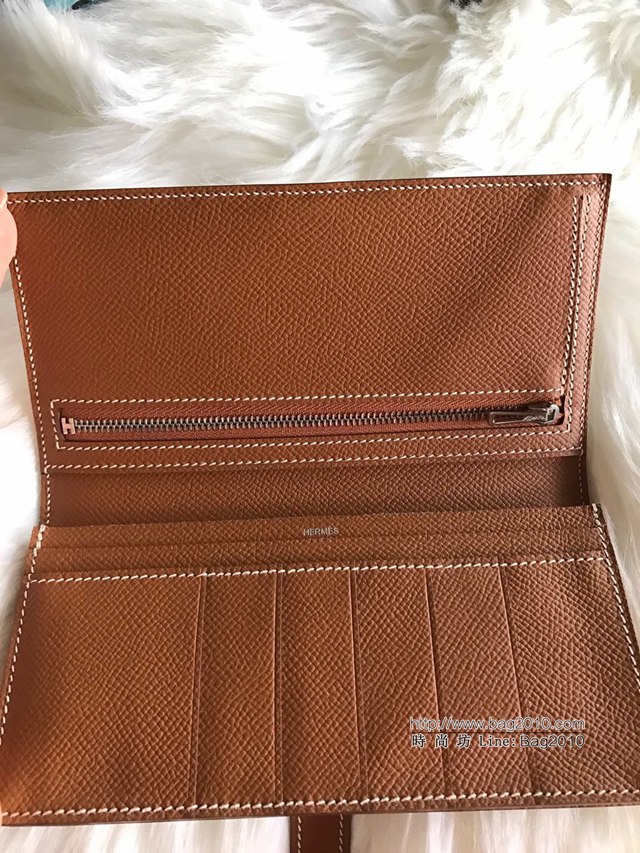 Hermes錢包 愛馬仕bearn長款錢夾 進口epsom皮 金棕 金扣銀扣 tdh2196