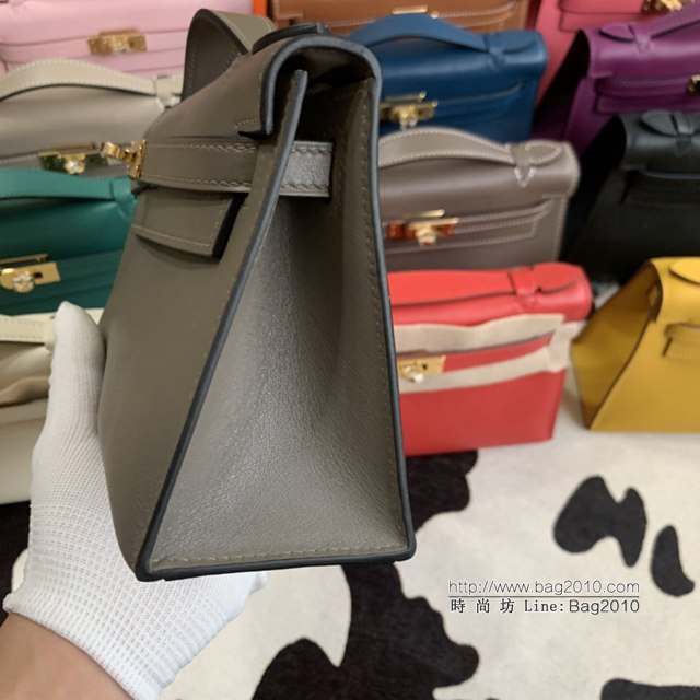 Hermes凱利女包 愛馬仕Minikelly pochette一代 原廠進口swift皮 半手工蠟線 錫器灰 金銀扣 tdh2270