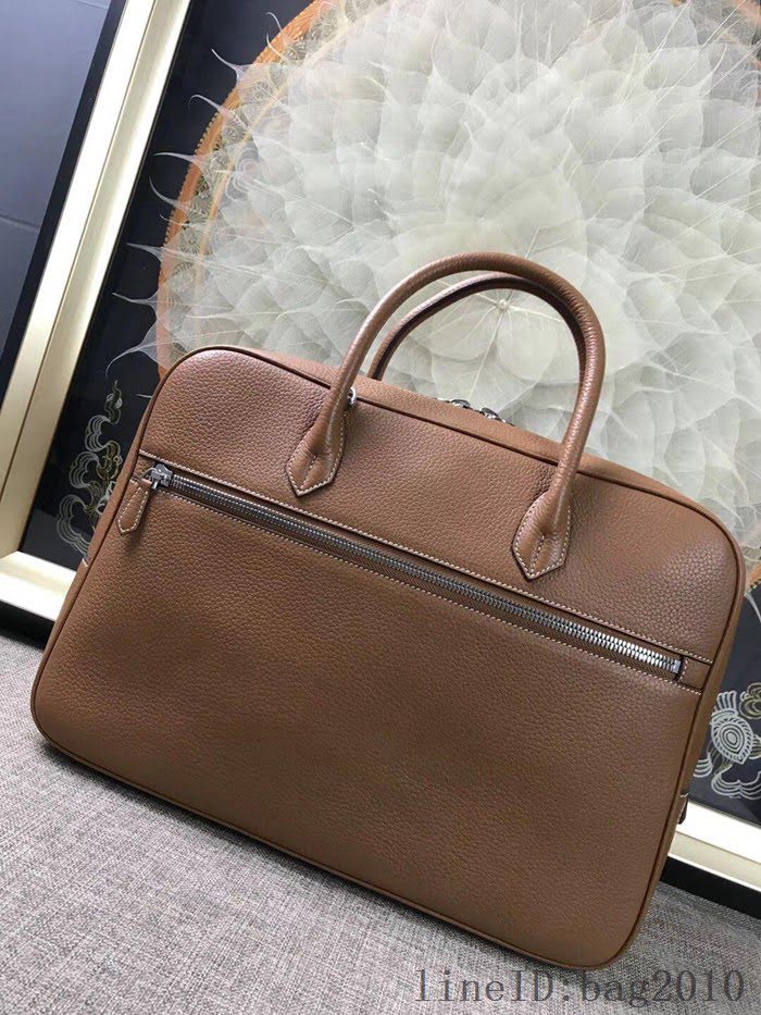 H家 郵差包 -男女插袋款 超大容量 進口原廠皮 配置肩帶 手提斜挎 出差必備單品 土黃色 size:38x10x30