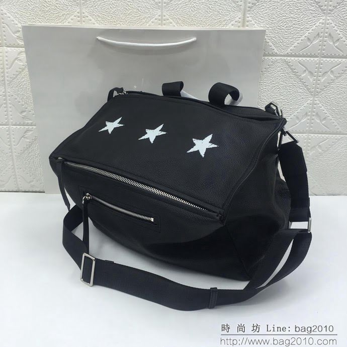 GlVENCHY紀梵希 2018官方熱賣推薦 復古 褶皺 黑色皮革挎包 單提手 Pandora方形郵差包  tsg1002