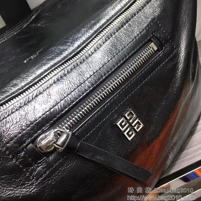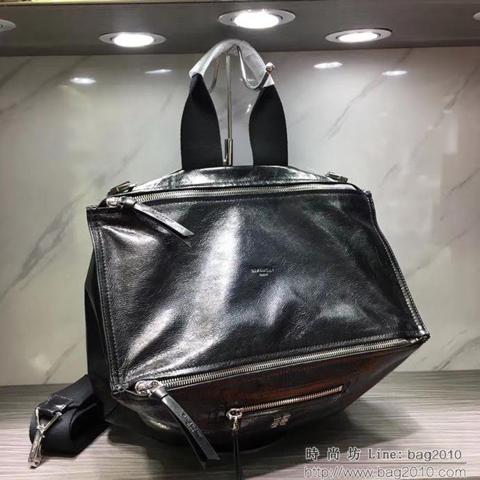Givenchy紀梵希 2018官方熱賣推薦【原單管道貨】 獨家實物拍攝 對比專櫃無壓力,復古效果褶皺黑色皮革挎包,Pandora方形郵差包,復古效果褶皺黑色皮革,正面飾有銀色金屬4G徽章。金屬拉鏈,單提手,尺寸40..20..23