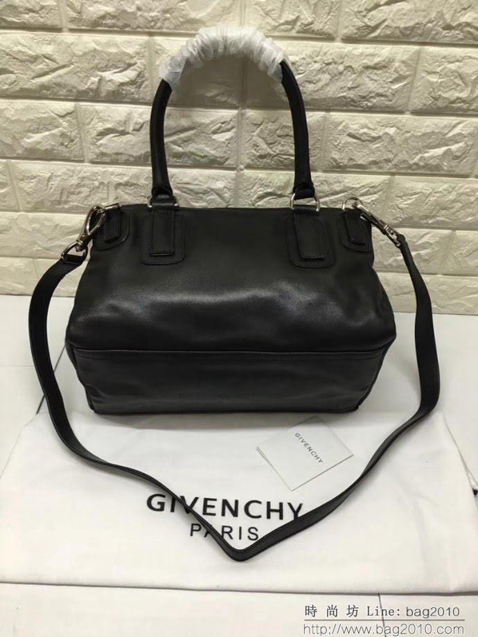 GlVENCHY紀梵希 潘多拉 黑色綿羊皮 銀色五金 100%純棉布 黑色 可手提 肩背 tsg1076