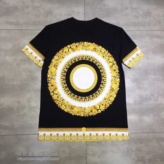 Versace短袖 19春夏新款 範思哲男士T恤 黑色印花短袖 tzy1579