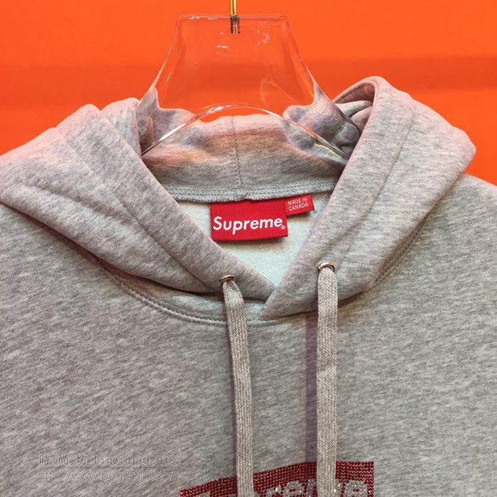 Supreme男裝 19-20FW施華洛世奇新款 最高品質 灰色 Supreme男士連帽套頭衛衣 男士秋季最新單品 tzy2359