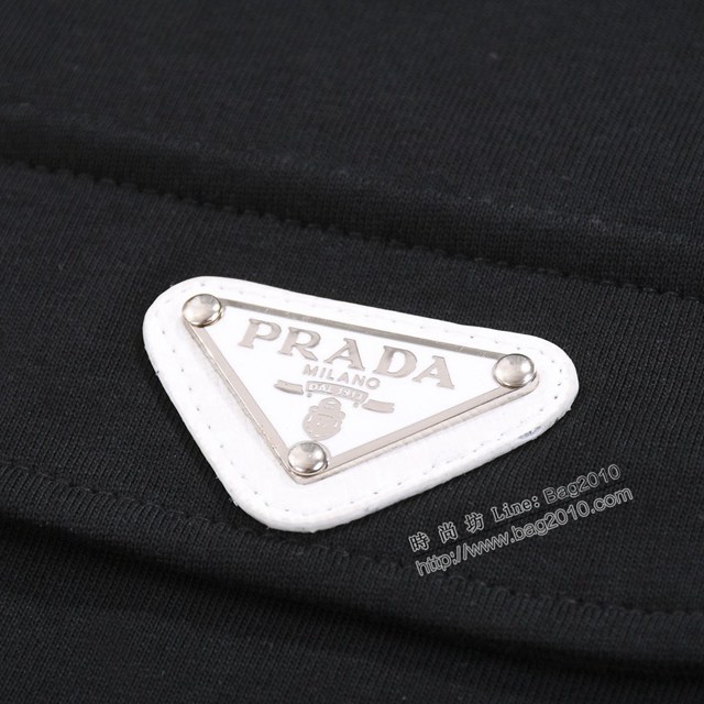 Prada專櫃普拉達2023SS新款刺繡三角標T恤 男女同款 tzy2819