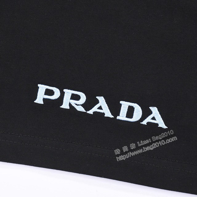 Prada專櫃普拉達2023SS新款刺繡三角標T恤 男女同款 tzy2820