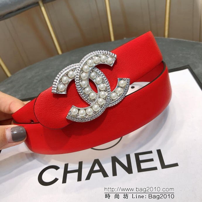 CHANEL香奈兒 18新款 CC珍珠水鑽扣 30MM精品光滑優雅皮帶 小紅書火爆款 xfp1008