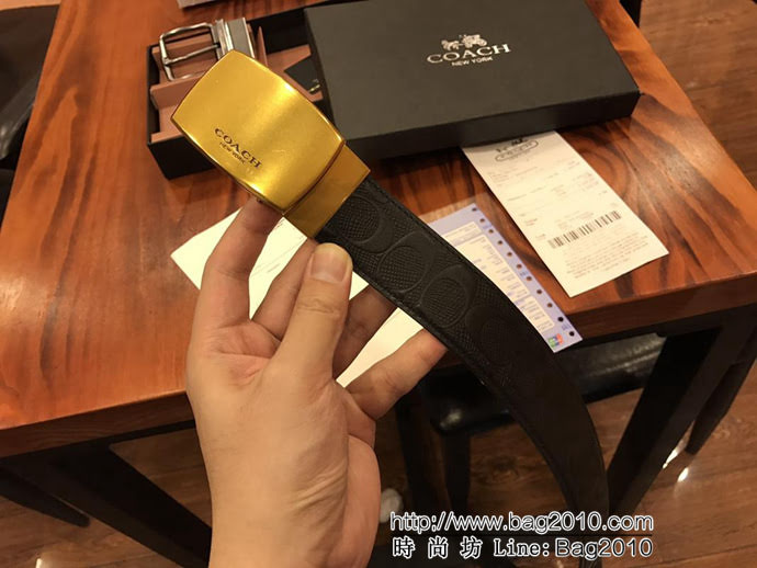 新款蔻馳 男士雙扣裝 3.8cm寸5,純銅電鍍皮帶扣,皮帶搭配官方專用頭層牛皮。