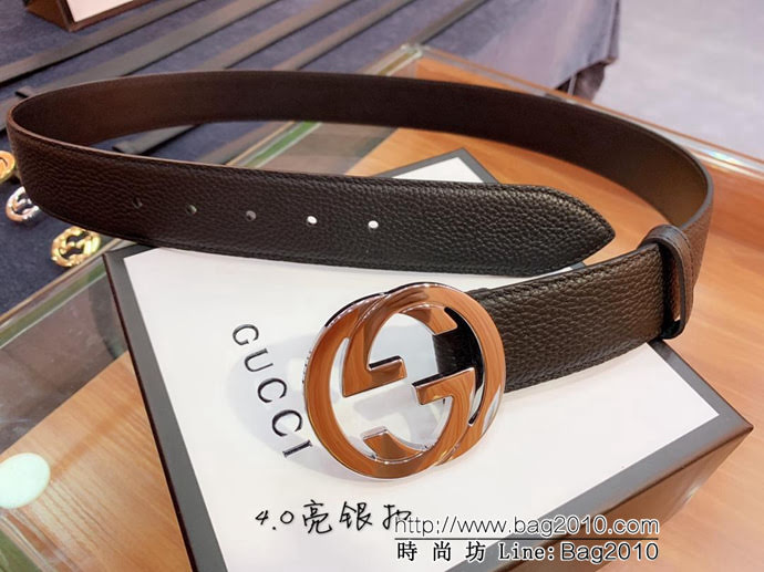 GUCCI古馳 官網爆款 正品規格 原單品質 togo荔枝紋牛皮 雙G亮面銀色扣 男士皮帶  xfp1076