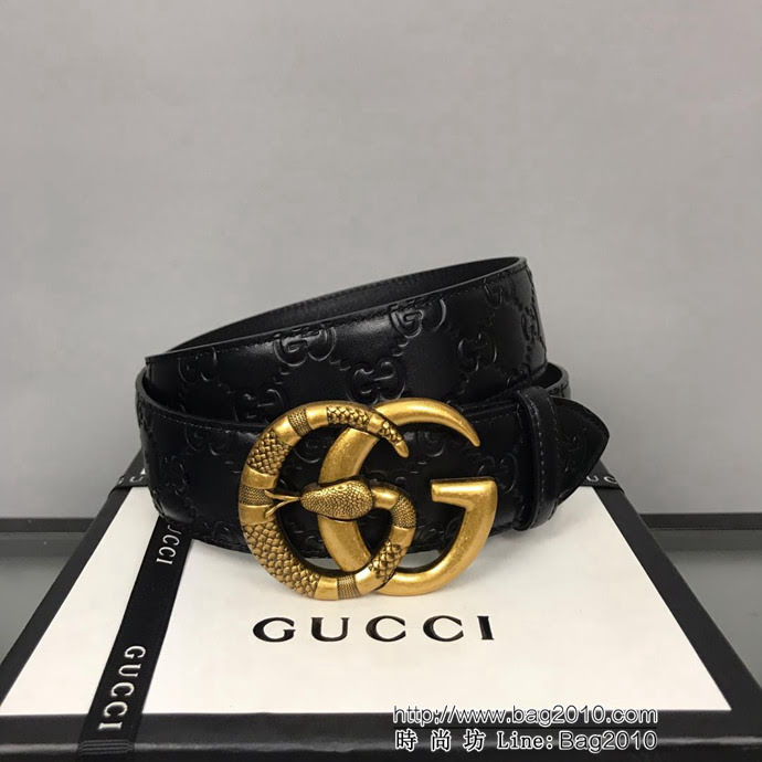GUCCI古馳 官網新款 正品規格 原單品質 頭層小牛皮壓花 對版尖尾 復古花蛇GG古金扣 男士皮帶  xfp1087