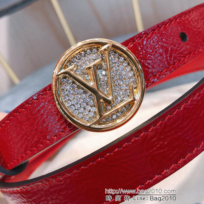 路易威登LV 18新款 20MM精品 進口漆皮牛皮腰帶 圓盤鑲鑽鋼扣 女款皮帶 xfp1135