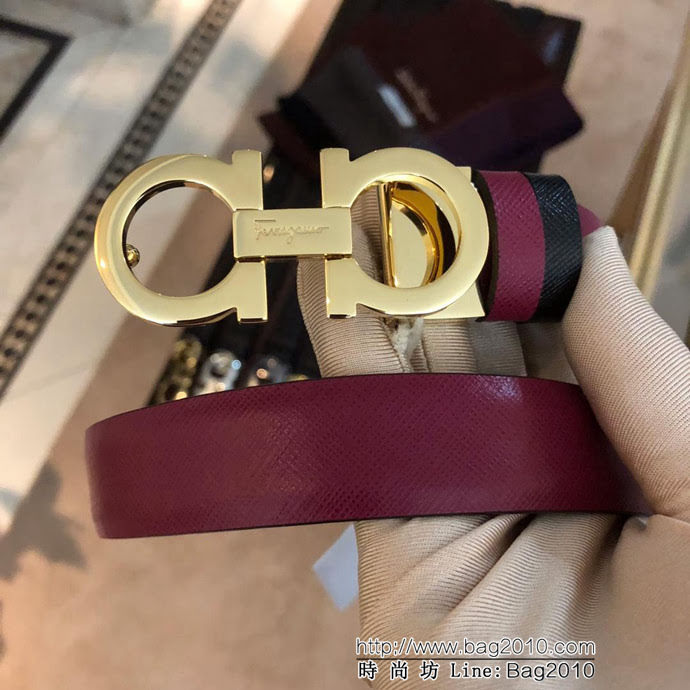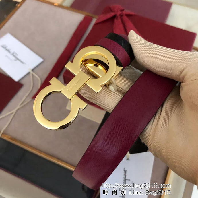 Ferragamo菲拉格慕 雙面十字紋進口小牛皮 獨特復古風格 精鋼扣 女款皮帶 xfp1196