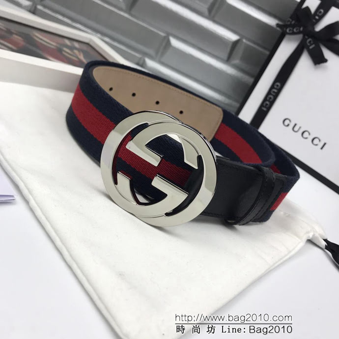 GUCCI古馳 官網潮流款 原單品質 紅綠布原版加厚織帶 409416 復古做舊GG古金扣 男士皮帶 xfp1346