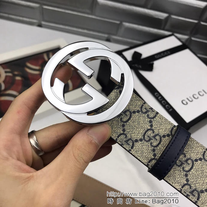 GUCCI古馳 官網經典款 原單品質 專櫃PVC提花面料 雙G拋光亮面扣 男士皮帶 xfp1352