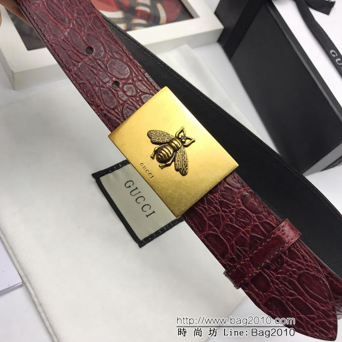 Gucci 古奇官網新款 正品規格 原單品質 定制頭層自然鱷魚紋 (非市場均勻的石頭紋) 對版尖尾 手感極佳 進口頭層皮底 40mm 復古蜜蜂板扣