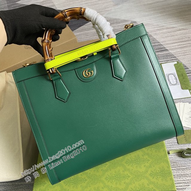 Gucci新款包包 古馳新款竹節手提包 螢光色扣帶 Gucci綠色全皮大號托特包 655658 ydg3181