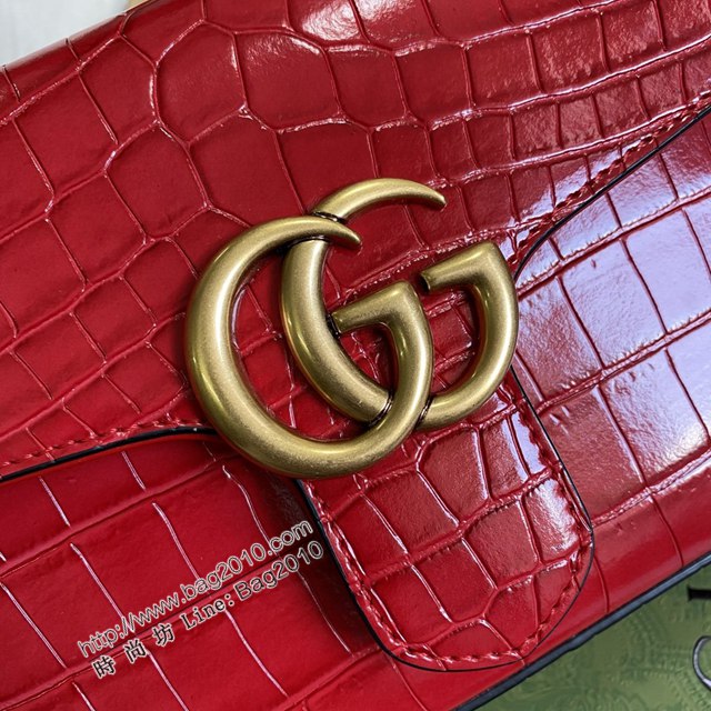 Gucci新款女包 古馳雙G銜縫迷你手提單肩斜挎鏈條包 Gucci鱷魚紋牛皮GG Marmont郵差包系列女包 547260 ydg3204