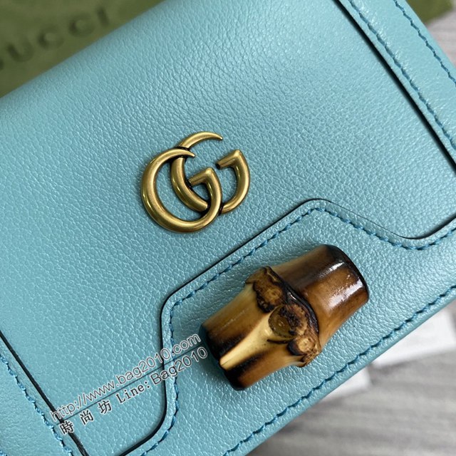 Gucci新款包包 古馳淺藍色全皮女款短錢夾 Gucci新款竹節鎖扣對折錢包 658244  ydg3303