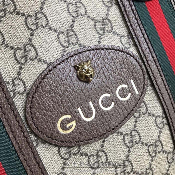 GUCCI 古馳男包 新款 473870 GG Supreme高級人造帆布 黑色紅色織帶裝飾 購物袋