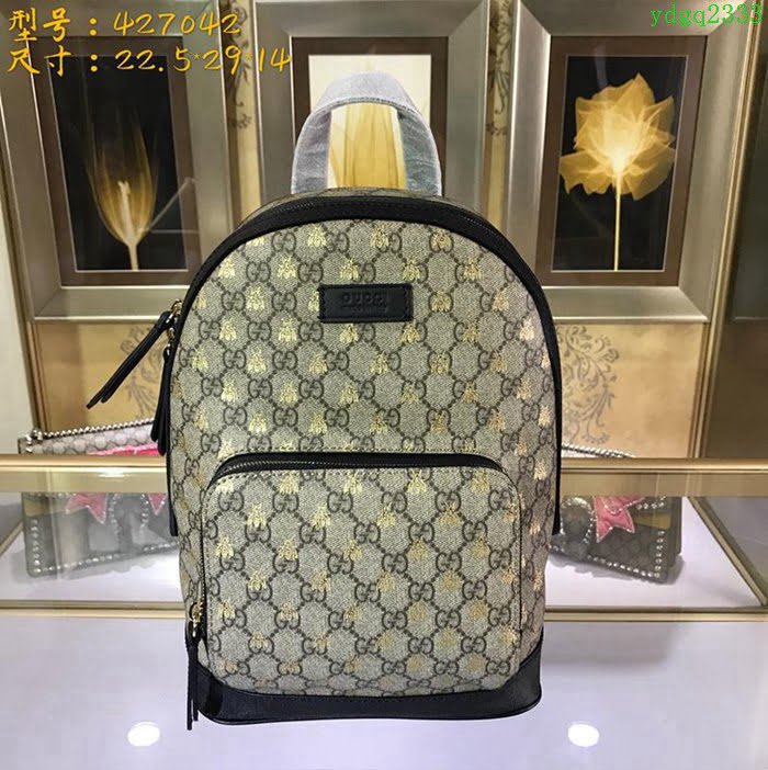 GUCCI 古馳女包 新款 427042 pvc刺繡 古奇奢侈品女包 蜜蜂圖案 雙肩包 女款背包
