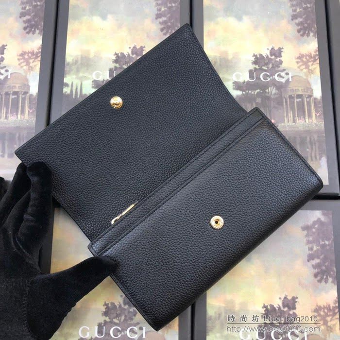 GUCCI古馳錢包 2019新款 Zumi系列 粒面皮革 互扣式G馬銜扣 女款翻蓋長錢包 573612 黑色  ydgq3279
