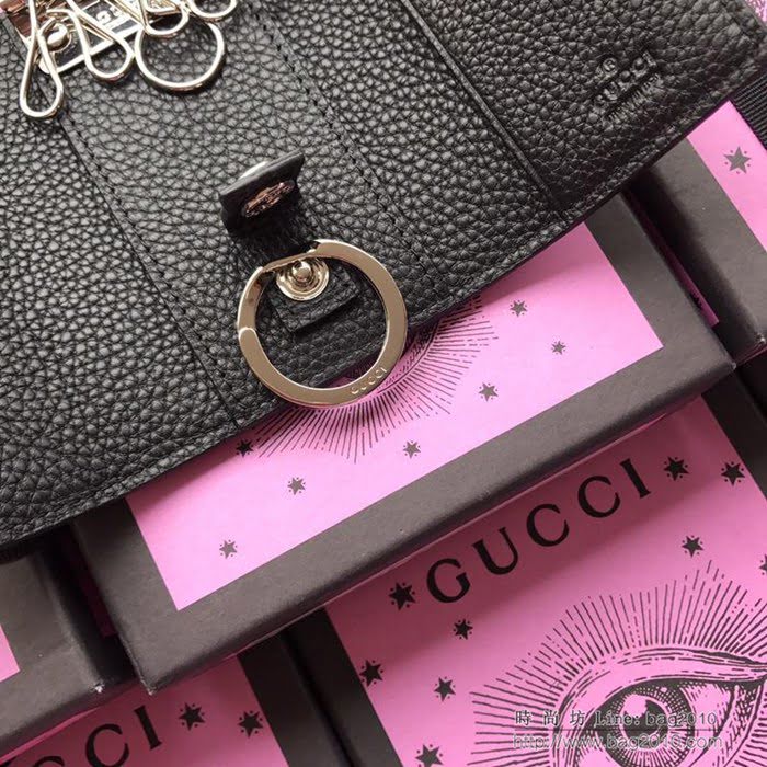 GUCCI古馳 新款 473924黑摔全皮 2018最新款 鑰匙包系列 雙GG鑰匙包  ydgq3484