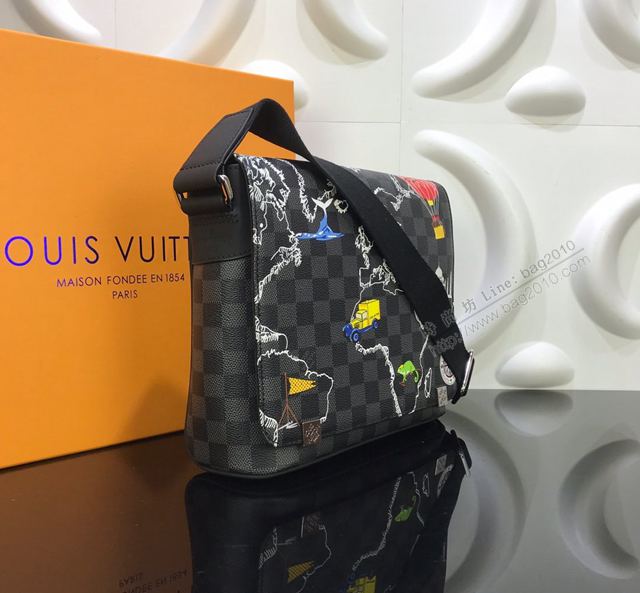 LV包 LV男包 N40238 District小號郵差包 世界地圖印花 LV男士單肩斜挎包 ydh3201