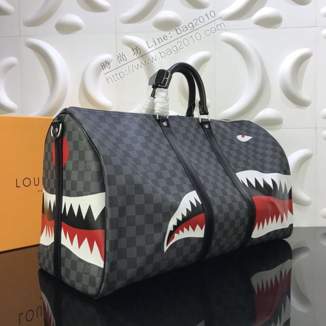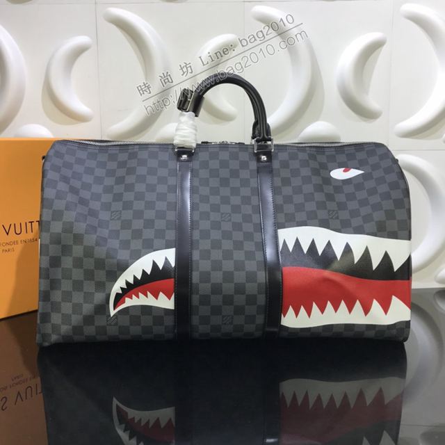 LV包 lv新款旅行袋 N56149鯊魚 KEEPALL 55旅行袋 LV棋盤格大號手提袋  ydh3435