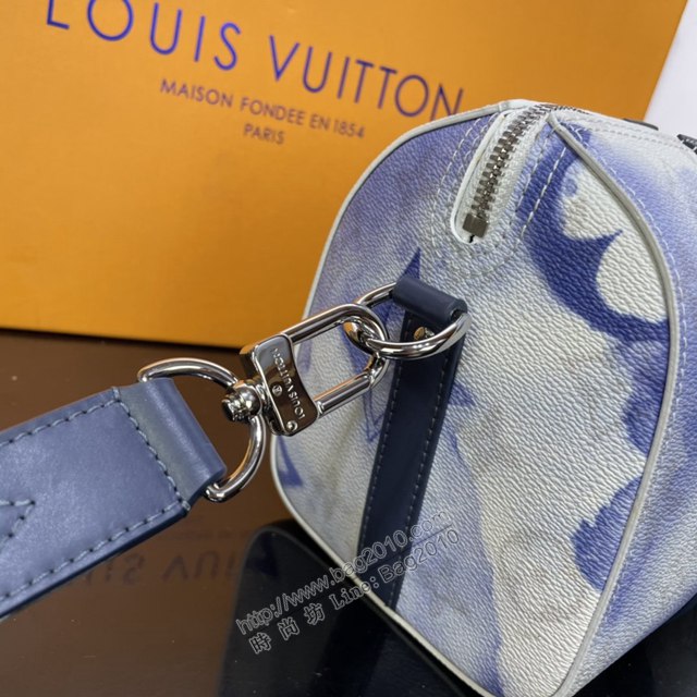 頂級原單M45757 Virgil Abloh 重繹 1930 年問世的經典 Keepall 手袋,為此款 City Keepall 手袋包裹 Monogram Watercolor Blue 帆布,展現 Monogram 圖案浸沒於水紋暈染的別致觀感。可容納都市日常出行所需。尺寸:27 x 17 x 13 釐米 (長 x 高 x 寬)- MonogramWatercolorBlue 塗層帆布牛皮飾邊織物內襯金屬件雙拉鏈封口名牌- 肩帶:可拆卸,可調節本品產地為法國、西班牙、義大利和美國之一
