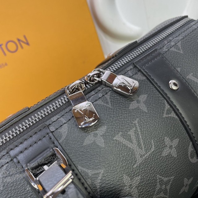 路易威登2021專櫃新款男包 lv黑色花男士旅行包斜挎包 M45936 Keepal旅行袋 ydh4487