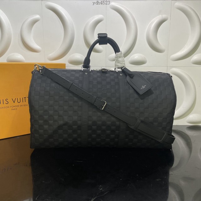 路易威登2021專櫃新款男包 lv男士手袋Damier Infini皮革旅行包 N41145 Keepall50配肩帶旅行袋 ydh4523