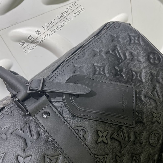 路易威登2022专柜新款手袋 M59025 路易威登Keepall旅行袋 牛皮革压印Monogram图案 LV男士手提旅行包 ydh4640