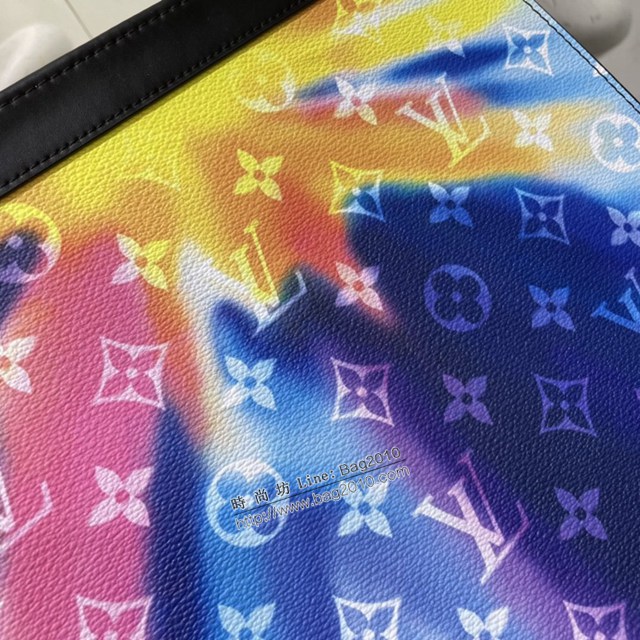lv路易威登專櫃2022新款Pochette Voyage手拿包 lv頂級原單紮染色彩男士手包 M45941 ydh4754