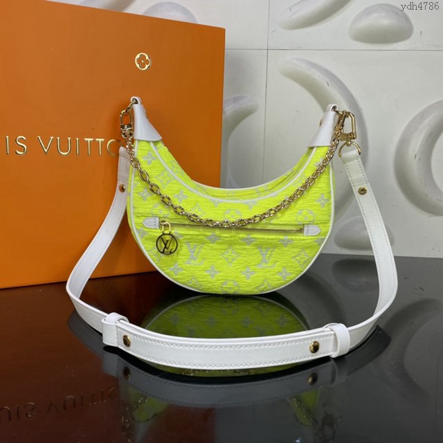 lv路易威登專櫃2022新款Loop半月形腋下包 lv頂級原單Monogram提花絨布單肩斜挎包 M81484 ydh4786